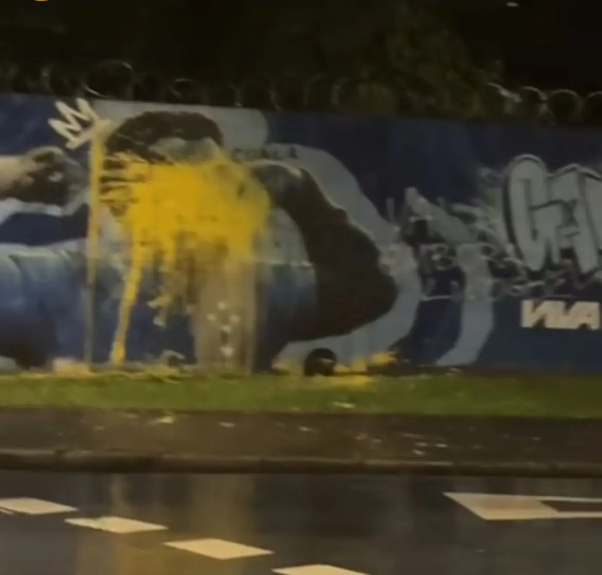 Na manhã desta segunda-feira, o muro foi pintado de azul por funcionários do clube.
