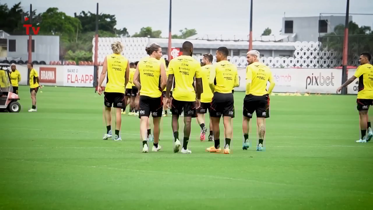 Pré-temporada no Flamengo: Gabigol, Pedro, Arrascaeta e Everton Ribeiro treinam passes e finalizações, em preparação para as disputas em 2023.