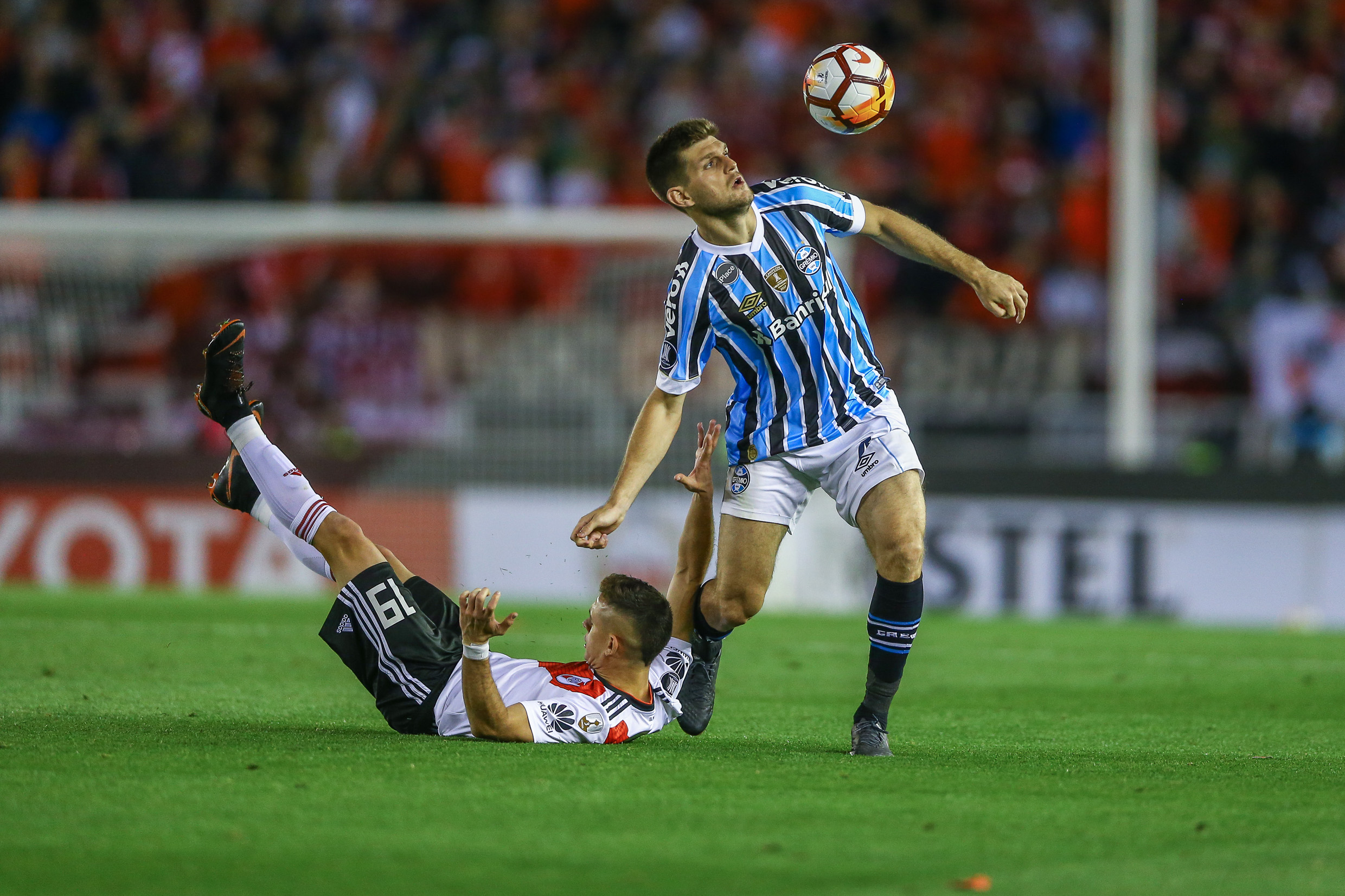 O zagueiro Kannemann levou o terceiro cartão amarelo aos 13 minutos do segundo tempo e fica de fora do jogo de volta contra o River Plate que ocorre no dia 30, terça, às 21h45 (de Brasília), na Arena, pela Libertadores. Em seu lugar no Grêmio deve entrar Paulo Miranda ou Bressan.