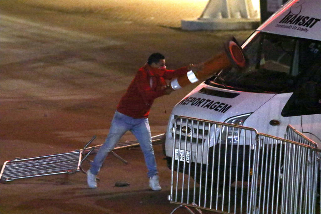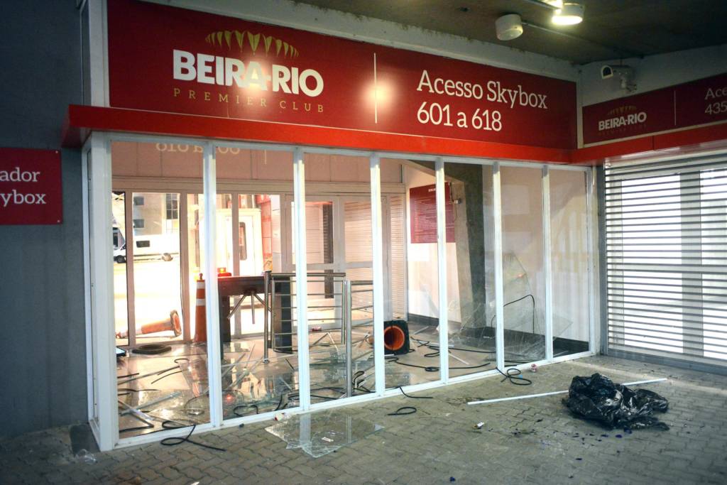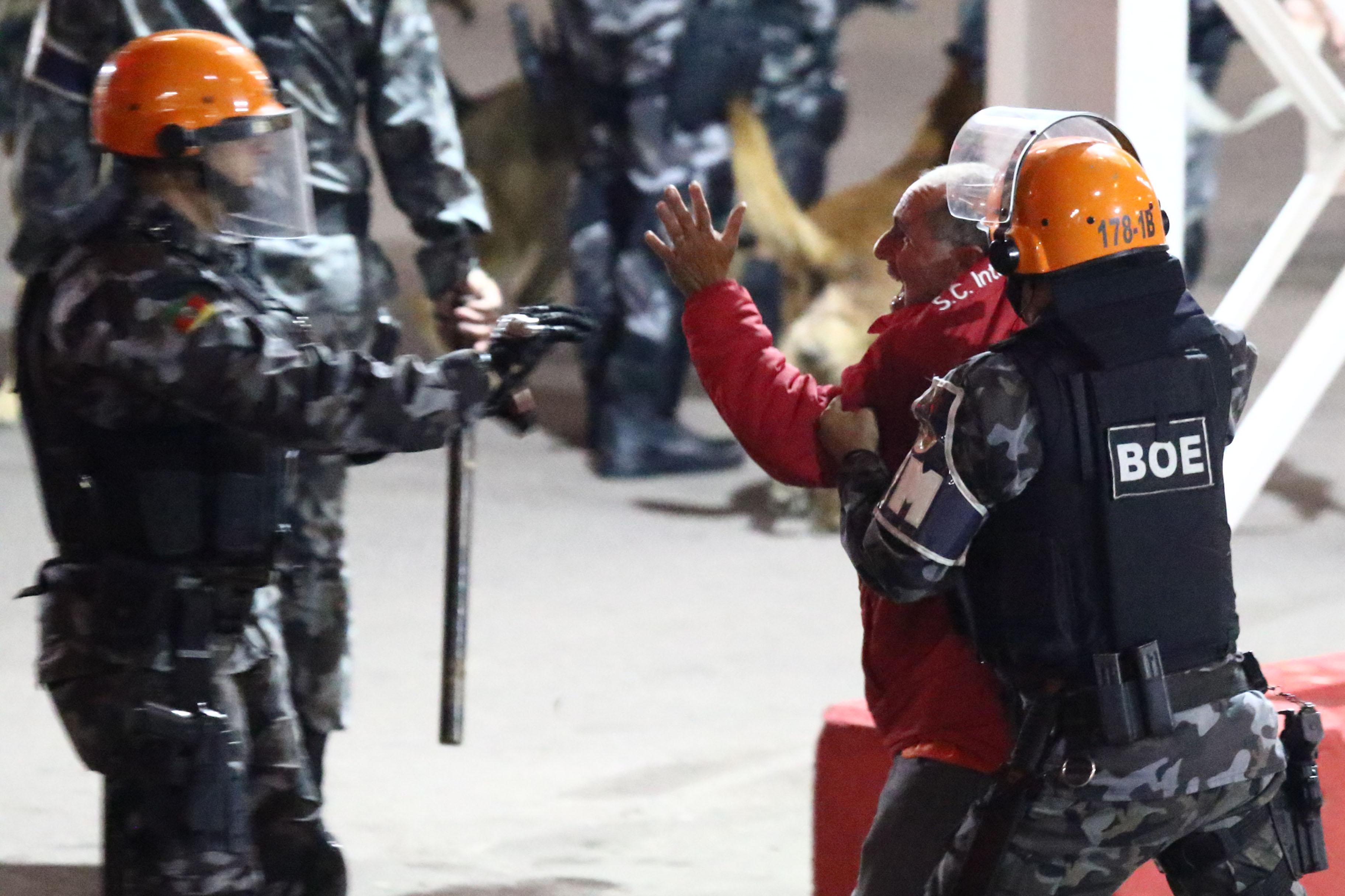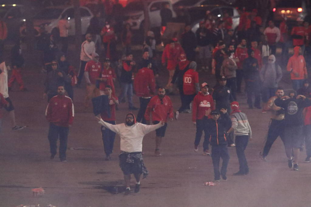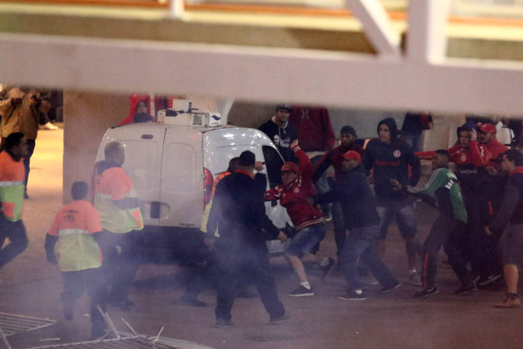 Grades de contenção do estádio foram jogadas contra as instalações do Internacional, além de garrafas de vidro. Para tentas dispersar os torcedores, a polícia militar usou spray de pimenta, que causou mal-estar em alguns dos jornalistas que acompanhavam a confusão. Veículos de algumas emissoras estacionados na região também foram atingidos por objetos