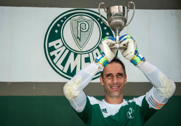 A convite da Gazeta Esportiva, o goleiro Fernando Prass, tarja de capitão no braço esquerdo, ergueu a Taça Savoia, conquistada pelo Palestra Itália há 100 anos. Um dos líderes do elenco comandado pelo técnico Oswaldo de Oliveira, ele sonha ganhar títulos pelo Palmeiras em 2015.