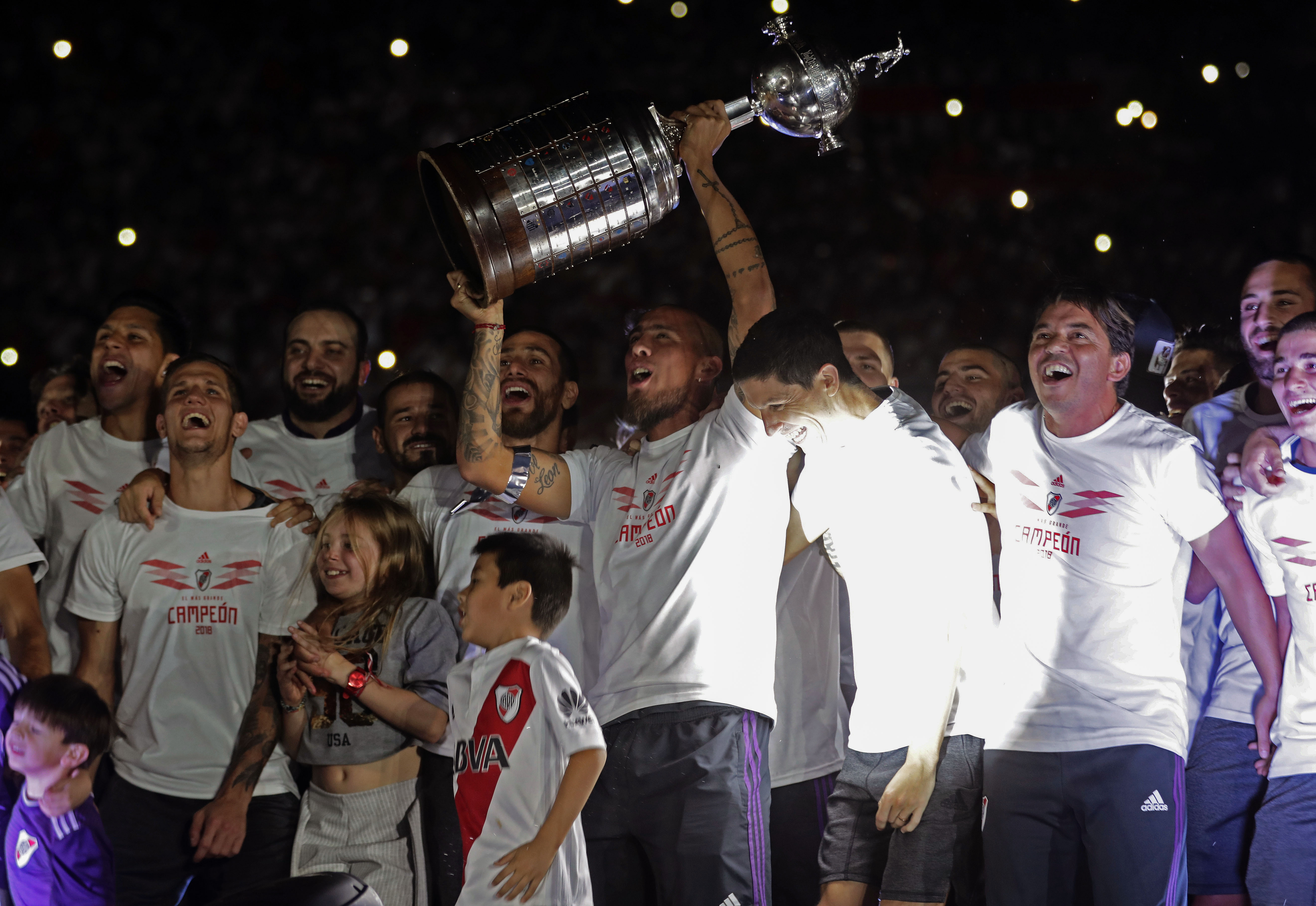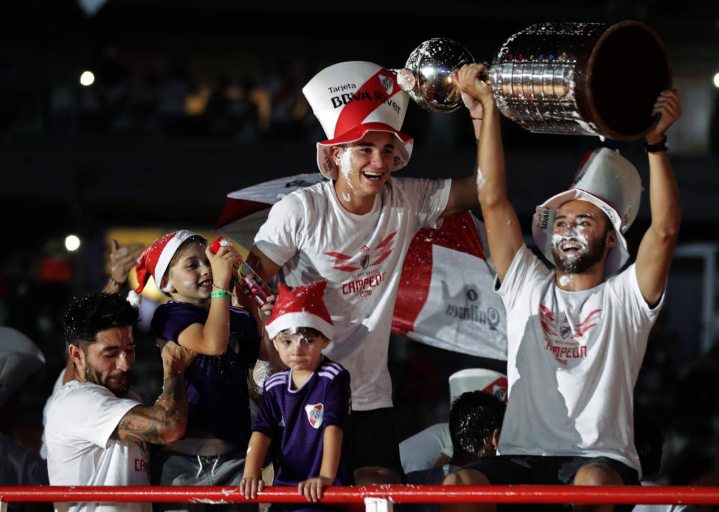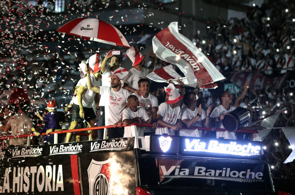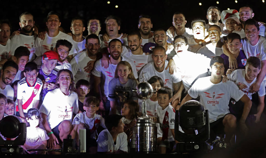 No último domingo, o River Plate comemorou o tetracampeonato da Libertadores com a sua torcida. Após a disputa do Mundial de Clubes nos Emirados Árabes, os Millonarios fizeram a festa com os torcedores, que lotaram as arquibancadas do estádio Monumental de Nuñez, em Buenos Aires.