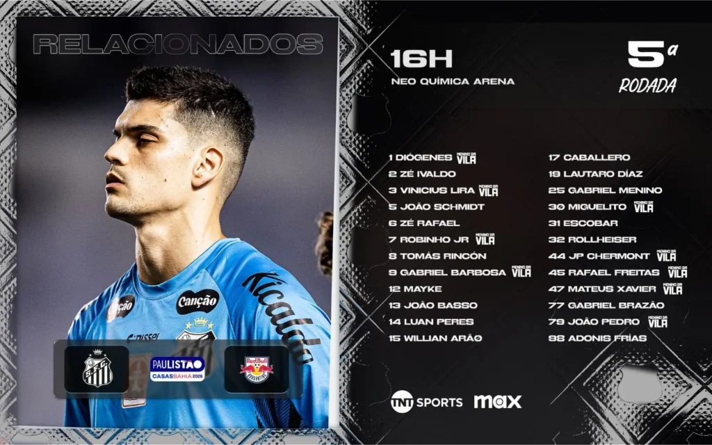 Confira a lista de relacionado do Santos: