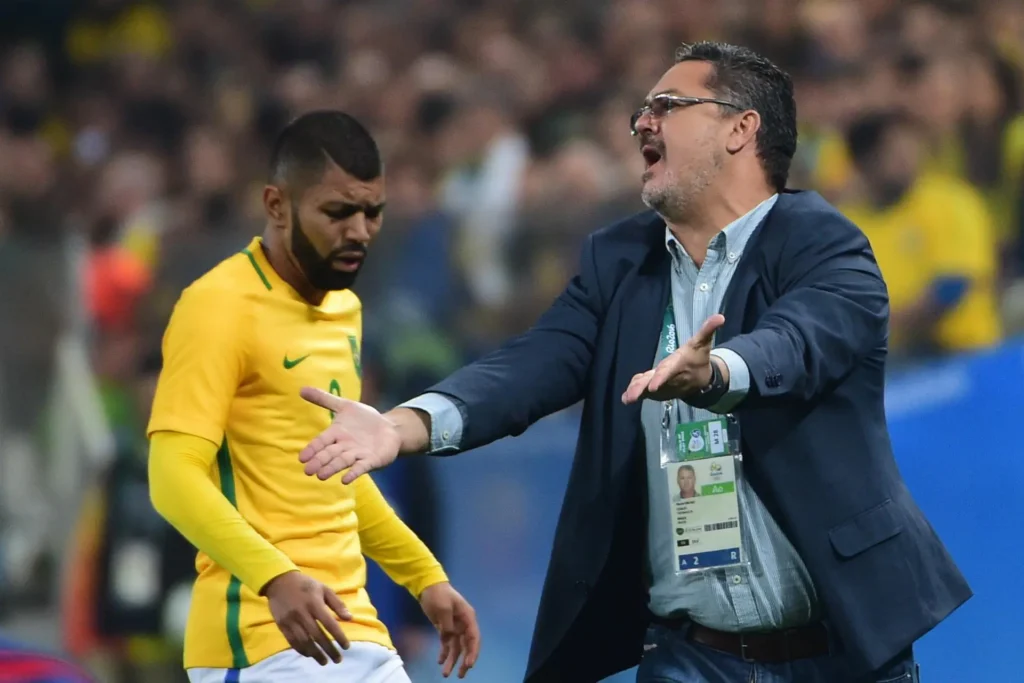 Rogério Micale durante partida contra a Colômbia, válida pelas quartas de final das Olimpíadas do Rio de Janeiro 2016 (Foto: DJALMA VASSÃO/Gazeta Press)