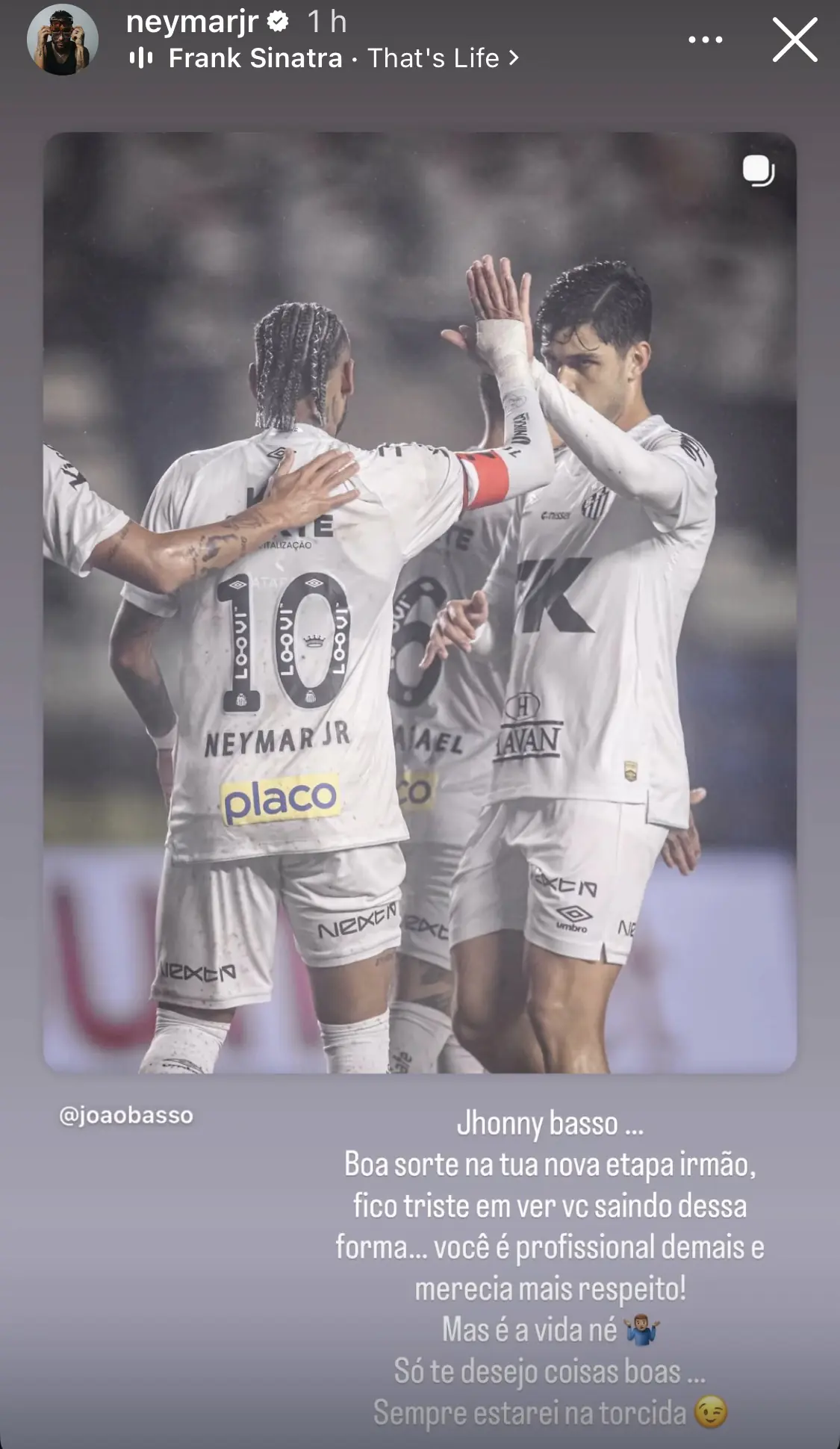 Na última terça-feira, o Santos confirmou a rescisão contratual com o zagueiro João Basso em comum acordo. Por meio de suas redes sociais, Neymar se despediu do antigo companheiro e afirmou que o atleta "merecia mais respeito" por parte do clube.