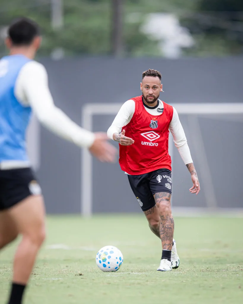 Neymar, que voltou a trabalhar em campo na última quinta-feira, avança no cronograma de transição física elaborado pelo departamento médico do Santos. O meia-atacante está na fase final de recuperação de uma artroscopia no joelho esquerdo.