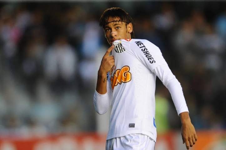 Revelado pelas categorias de base do Santos, Neymar estreou pelos profissionais em 2009, permanecendo no clube até 2013. Vestindo a camisa do Peixe, o atacante disputou 225 partidas oficiais e balançou as redes 136 vezes.
