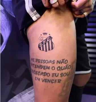 O Santos está eternizado na pele de Neymar Júnior. O craque tatuou o símbolo do Peixe na coxa direita, um pouco acima da tatuagem com o escrito "As pessoas não entendem o quão obcecado eu sou em vencer". O registro foi divulgado pelo tatuador Adão Rosa nesta segunda-feira.