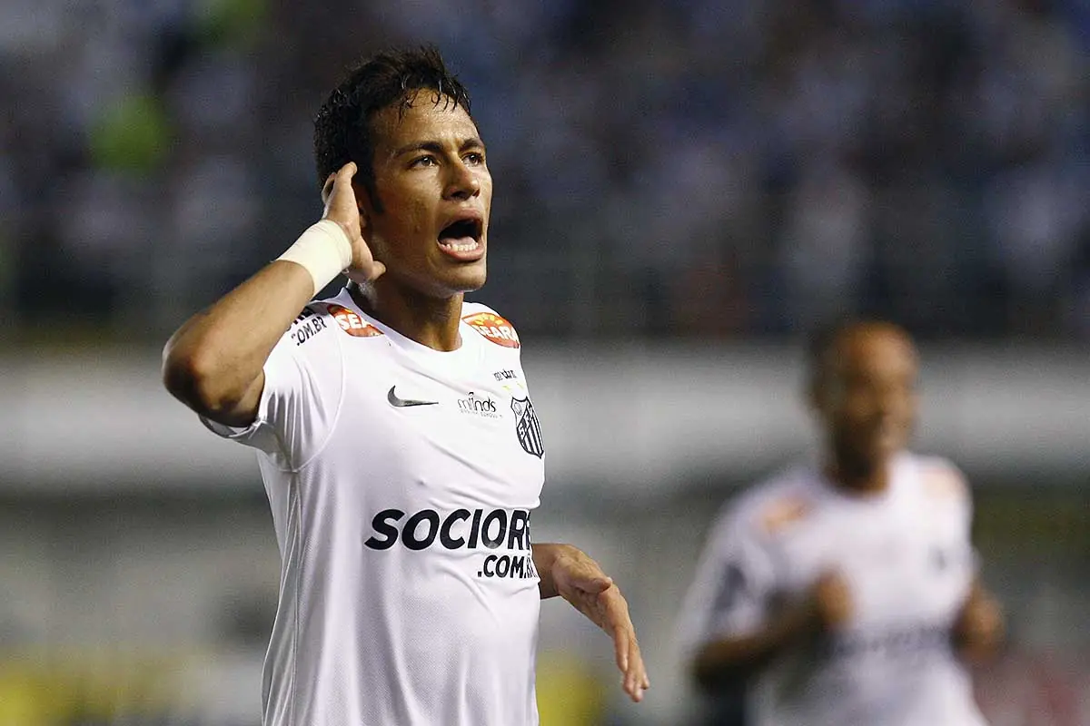 Neymar defendeu o Santos de 2009 até 2013. Ao todo, foram 225 jogos e 136 gols pelo clube paulista, além de um título da Libertadores, marcando na final, um da Copa do Brasil e três do Campeonato Paulista.