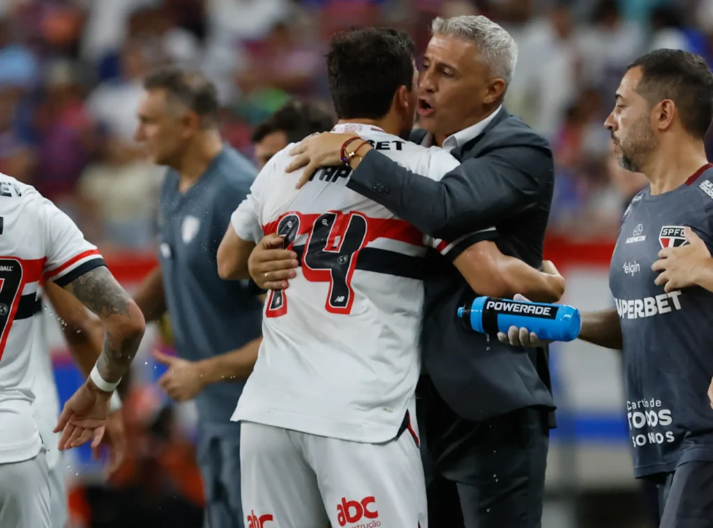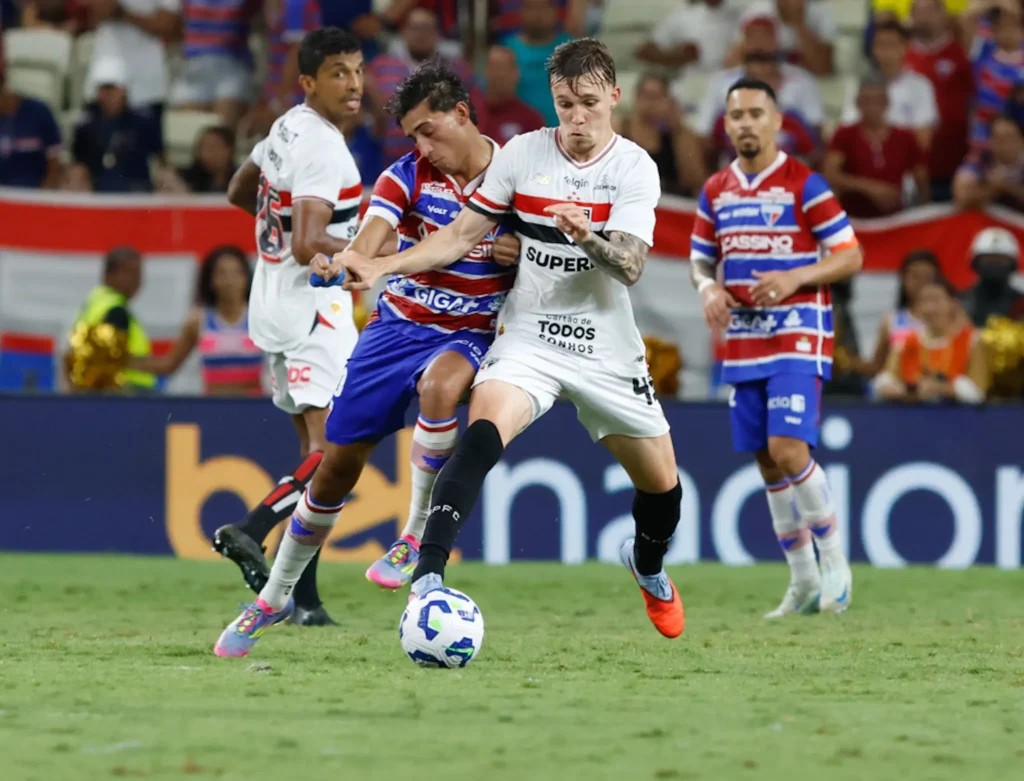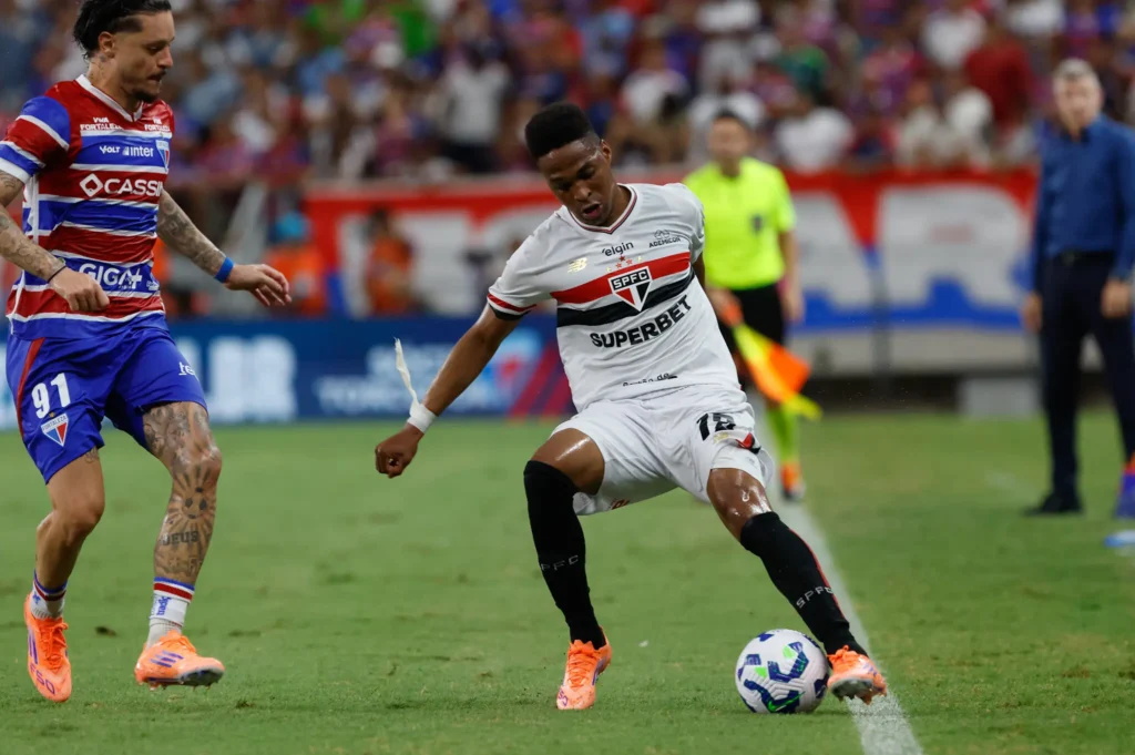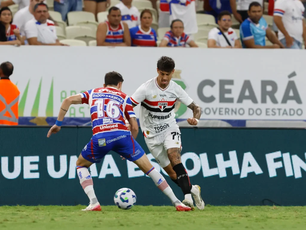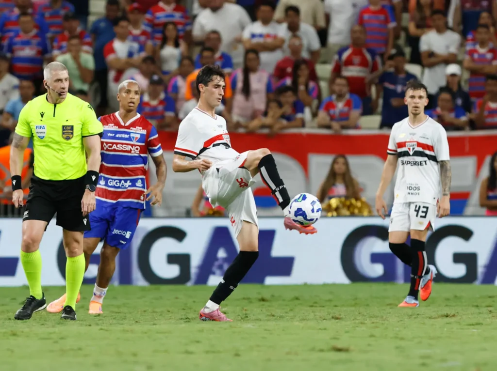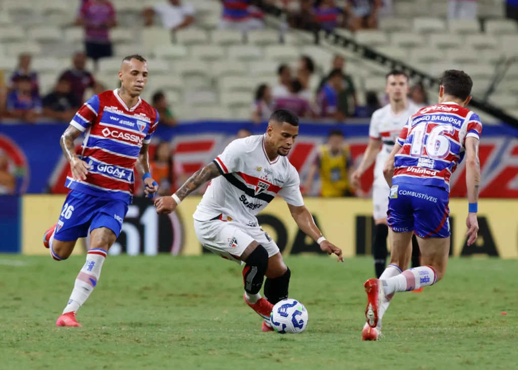 O São Paulo conquistou uma importante vitória nesta quinta-feira, fora de casa, contra o Fortaleza, por 2 a 0, pelo Campeonato Brasileiro. O resultado, que já era extremamente importante, foi ainda mais pelo fato de o time tricolor ter jogado com um homem a menos em campo desde os 20 minutos do primeiro tempo.