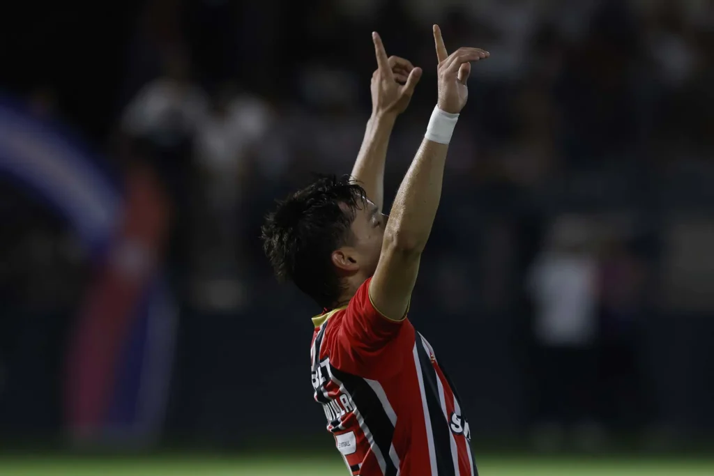 Em jogada ensaiada, Lucas marcou o segundo gol do São Paulo, após assistência de Calleri. O camisa 7 celebrou o momento vivido pela equipe, que chegou à quarta vitória consecutiva. Individualmente, o atacante também atravessa boa fase, com três gols e uma assistência nos últimos cinco jogos.