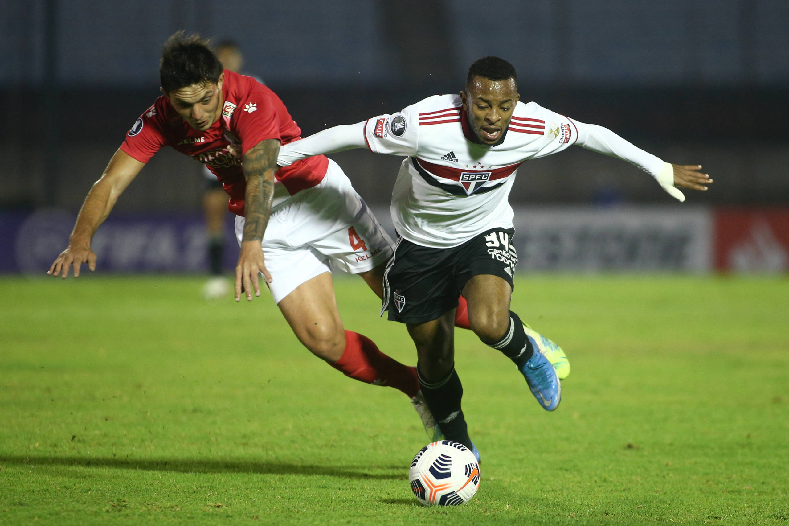 O jogo – O São Paulo mostrou que não estava para brincadeira logo no início de jogo. Aos quatro minutos, Igor Gomes cobrou escanteio, e Orejuela, estreante da noite, apareceu no primeiro pau para completar de cabeça, encobrindo o goleiro do Rentistas para abrir o placar no estádio Centenário.