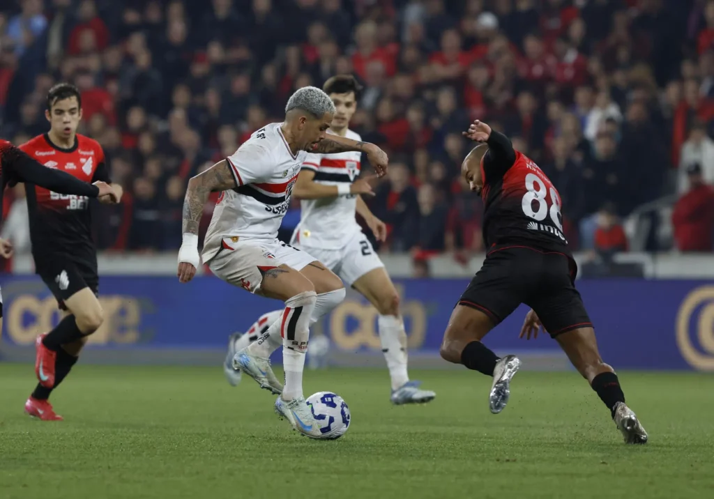 O São Paulo voltou a ser assombrado por uma disputa de pênaltis na derrota para o Athletico-PR, na Arena da Baixada, no jogo de volta das oitavas de final da Copa do Brasil. Na última quarta-feira, o Tricolor não converteu nenhuma cobrança e foi derrotado por 3 a 0.