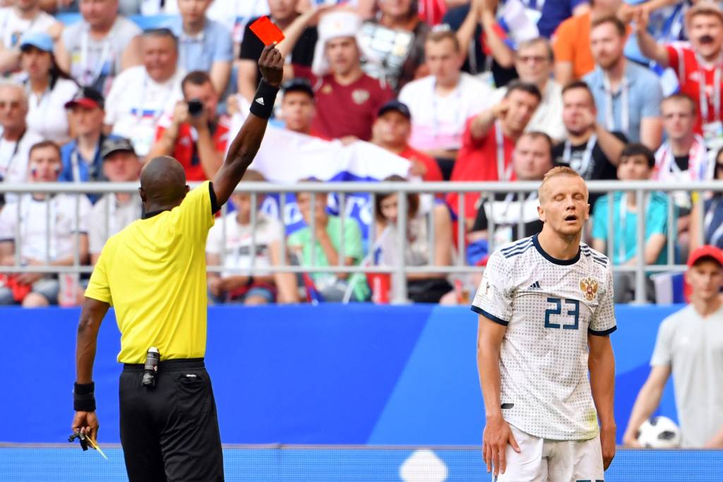 Cartão vermelho: Smolnikov (RUS)