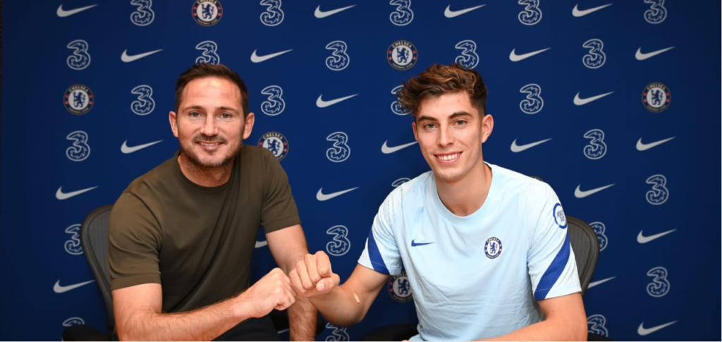 Havertz ao lado de Frank Lampard, técnico do Chelsea (Foto: Divulgação/Chelsea)