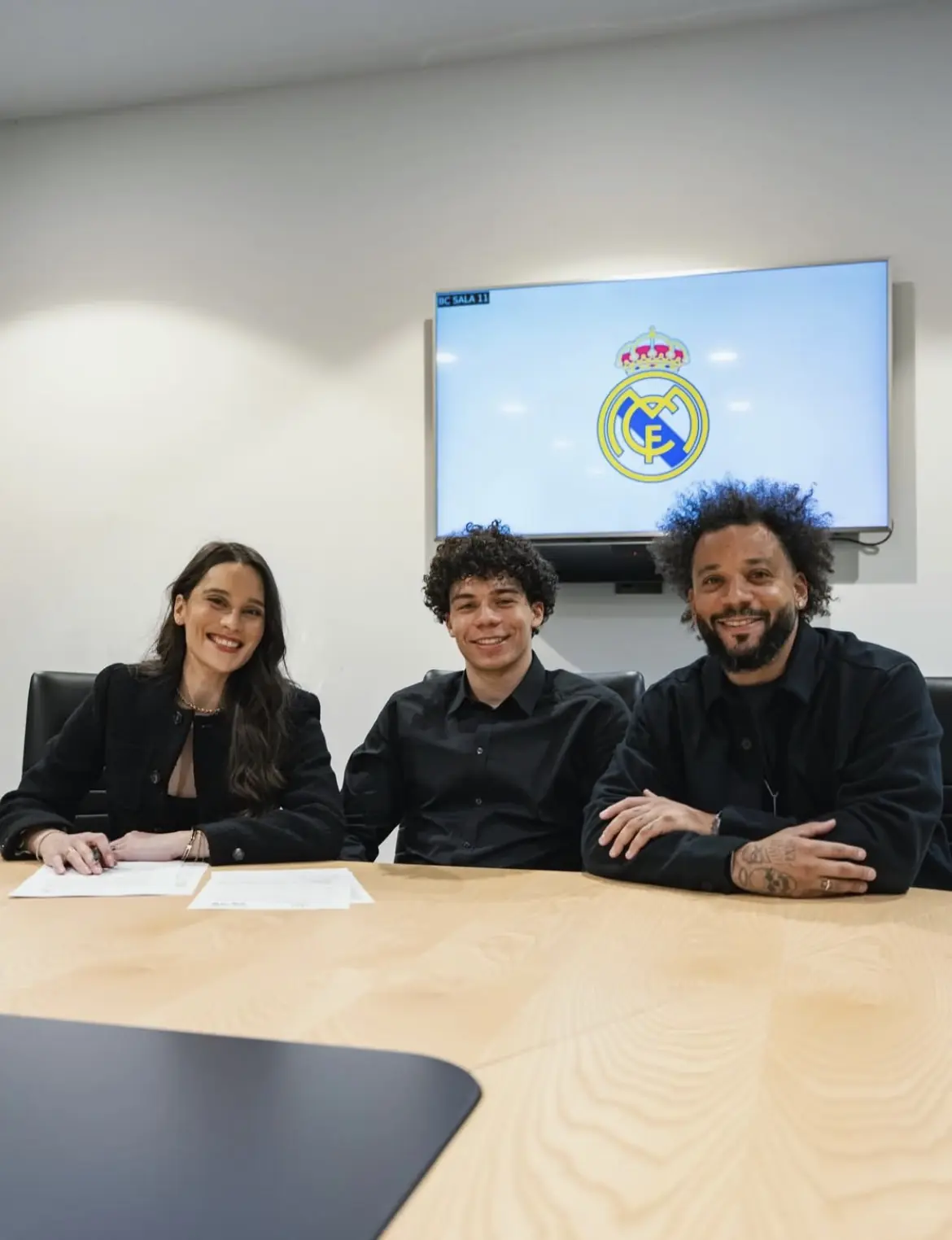 "Feliz por assinar meu primeiro contrato profissional! Hala, Madrid!", publicou, com um coração branco no final da frase. O garoto teve a companhia da família para registrar o vínculo, inclusive de Marcelo, um dos maiores ídolos do clube.
